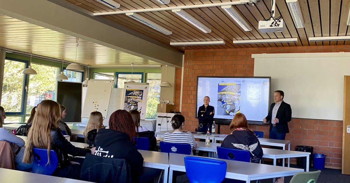 Den Abschluss bildete ein bewegendes Video, in dem die Ehefrau des verunglückten Autofahrers zu Wort kam. Ihr eindringlicher Appell an die Jugendlichen lautete: „Rasen tötet.“