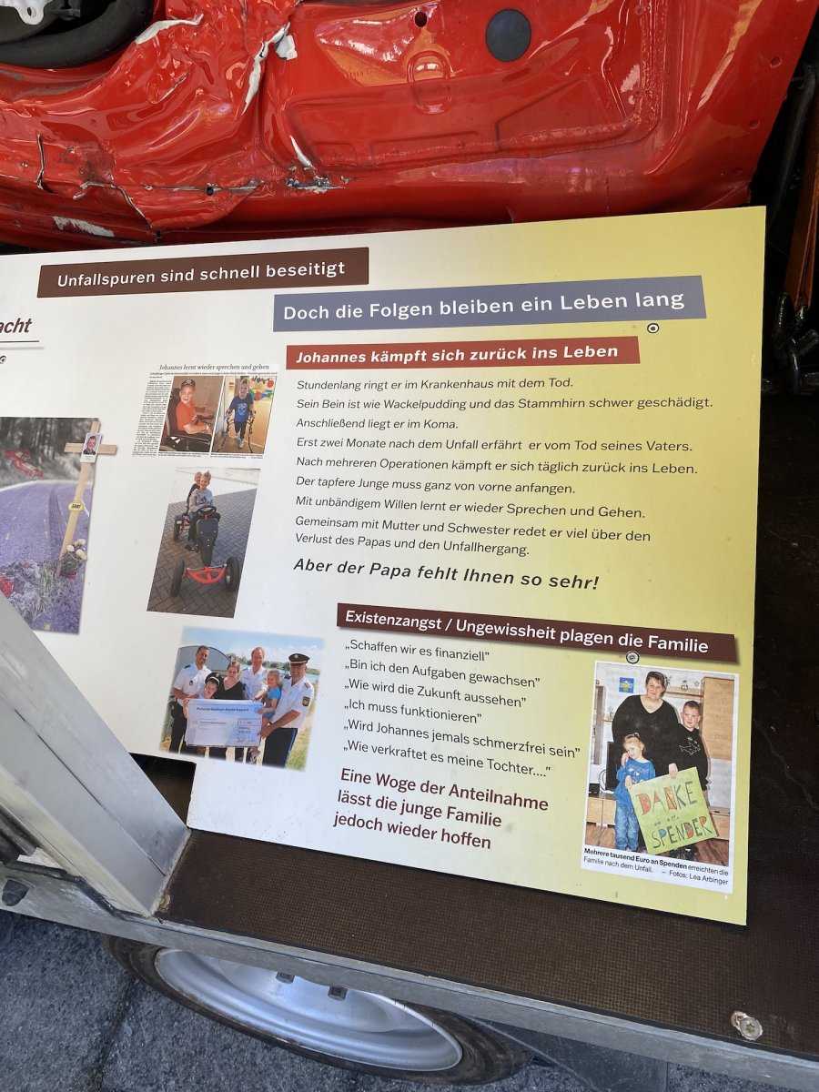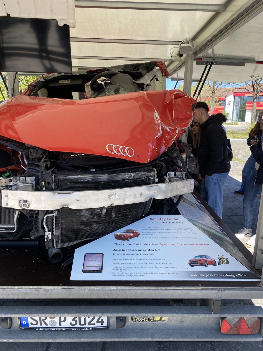 Nach einer kurzen Ansprache des Schulleiters stellte Anna Rieß das Projekt und dessen Hintergrund vor. Im Mittelpunkt stand ein realer Unfall, der sich am 14. Juli 2018 ereignete. Zwei Männer – ein 27-jähriger Fahrer eines stark motorisierten Audi TTRS sowie ein 53-jähriger Motorradfahrer auf einer Suzuki GSX-R 1000 – lieferten sich ein illegales Wettrennen. In den Unfall verwickelt war zudem ein unbeteiligter Autofahrer, der mit seinem zehnjährigen Sohn unterwegs war. Die dramatischen Folgen dieses Rennens bildeten die Grundlage der gesamten Veranstaltung.